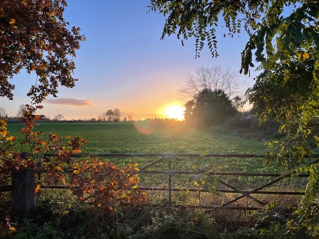 A glimpse of the setting sun brightened the end of an ordinary day. A world set aflame is briefly enlightened as nature holds sway. An autumnal chill creeps gently, revealing the clearest of skies. As night hesitates and tentatively conceals the stars in her eyes.