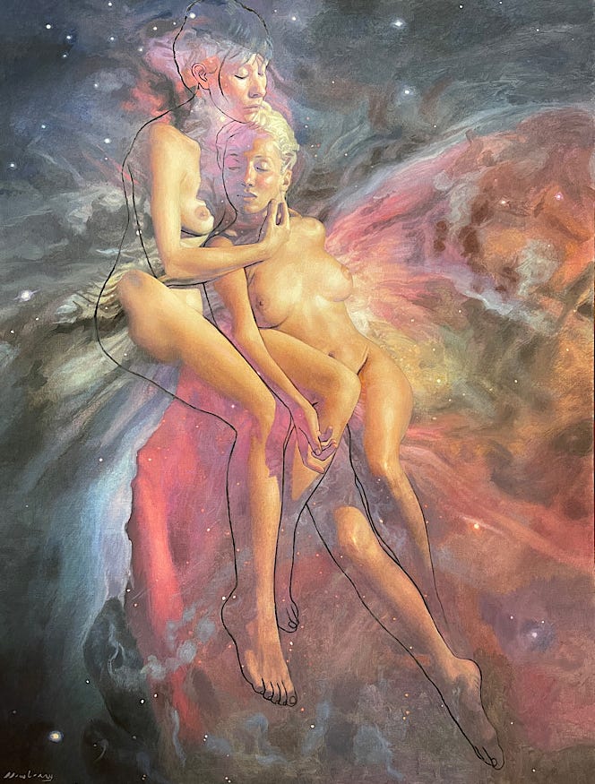 This is so uplifting, Trudi. I really like the kind of telescoping nature of it, the expansion into the big cosmic cycle. A beautiful collaboration with Michael Newberry's artwork. Love it.